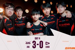 体育资讯3月20日讯 今日先锋赛小组赛上,JDG以3-0的比分击败LOUD,赛后赛事官方更博庆祝:初心如磐,征途如虹,恭喜@JDG京东电子竞技俱乐部 赢下2026全球先锋赛小组赛第四日的比赛!
