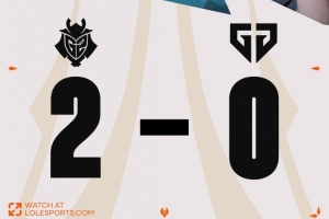 G2拿下二大龙继续推进,虽然Duro牛头绕后配合队友强杀HS维鲁斯,GEN一波0换4打回8000经济差,但是最终SkewMond亚恒复活配合队友逮捕Canyon蔚,多个人的G2逐个击破,拆掉基地水晶结束比赛!G2拿到三个赛点!